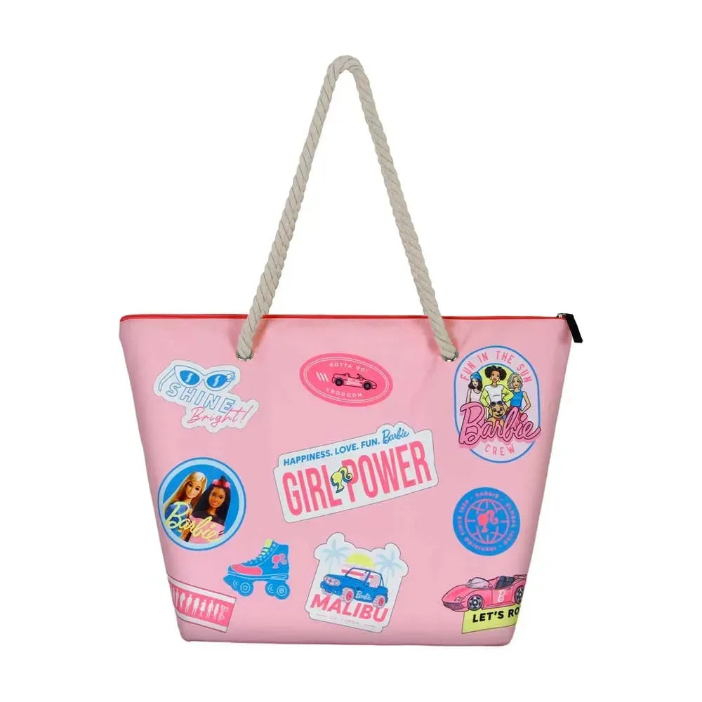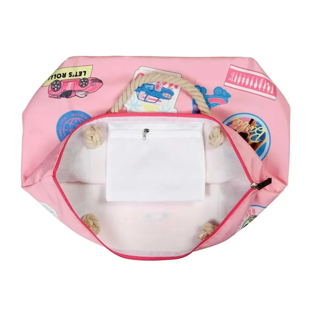 Soleil Tote Bag Barbie Malibu. Barbie. Tote bag with one single compartment closed with zip. It has two upper handles to be carried by hand or on the shoulder.