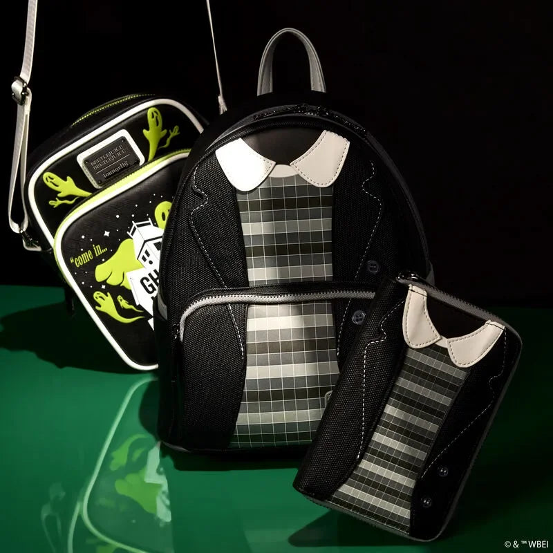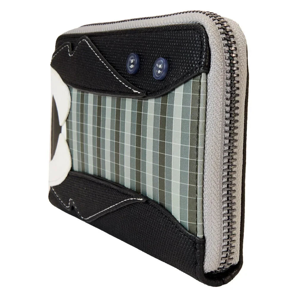 Co-ghost a show in style! Take along our Beetlejuice Beetlejuice zip-around wallet, featuring Lydia Deetz’s hauntingly fashionable flair. A textured twill material makes up Lydia Deetz’s jacket. Her collared shirt is an applique detail, and real buttons appear on the coat. A gray checkered outfit underneath coordinates with the jacket. Flip the wallet around, and you’ll find the words “Ghost House with Lydia Deetz” on the back. Secure your valuables and prepare for spine-tingling adventures.