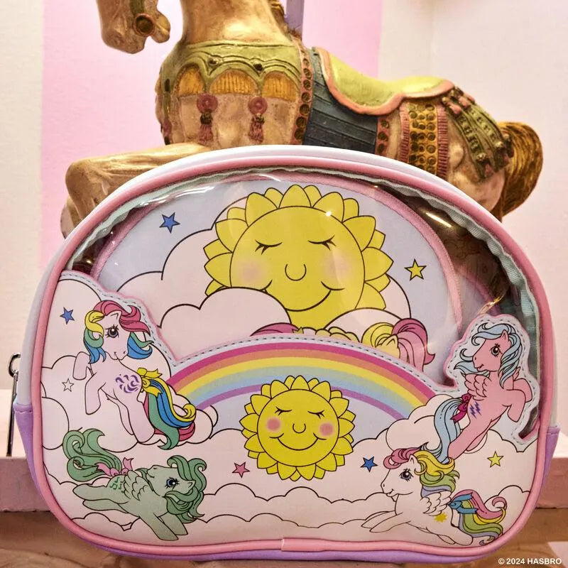 Gallop away with a rainbow of colors! Our My Little Pony 3-Piece Cosmetic Bag Set is ready for magical, fun-filled adventures. This colourful cosmetic set offers a variety of options for storing cosmetics or other smaller items for your journeys. The bags nest inside one another for convenience, and they feature original printed artwork of the My Little Pony Dream Castle, suns, clouds, rainbows, and fan-favourite My Little Pony characters, such as Windy, Medley, Firefly, Starshine, Blossom, Parasol, Moonstone, Skydancer, and more. Secure your essentials while taking the reins in style.
