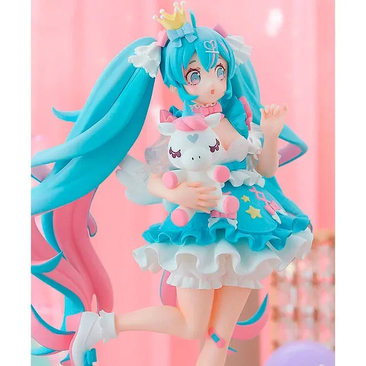 FuRyu is proud to bring a new entry into their popular Tenitol series: Hatsune Miku (Yumekawa Princess)! Dressed in a cute royal outfit, she clutches a unicorn stuffed animal as she has a surprised look upon her face. Order your figure today!